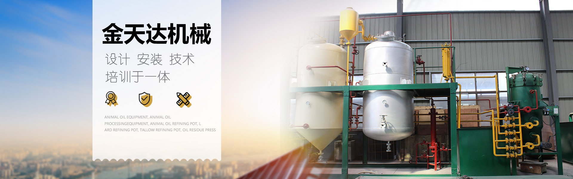 鄆城金天達(dá)機(jī)械設(shè)備有限公司設(shè)計(jì)、安裝、技術(shù)培訓(xùn)于一體,鄆城金天達(dá)機(jī)械設(shè)備有限公司經(jīng)過多年的風(fēng)風(fēng)雨雨,擁有良好的經(jīng)營環(huán)境和高素質(zhì)的人才,集中了設(shè)備研制的高科技人才、并經(jīng)過嚴(yán)格訓(xùn)練的各類人才。 鄆城金天達(dá)機(jī)械設(shè)備有限公司主要經(jīng)營范圍:油脂化工設(shè)備、環(huán)保凈化設(shè)備、烘干設(shè)備、輸送設(shè)備、環(huán)衛(wèi)設(shè)備、農(nóng)業(yè)機(jī)械、制造與銷售及進(jìn)出口業(yè)務(wù);環(huán)衛(wèi)車輛銷售。 本公司歡迎各界朋友前來合作交流!
